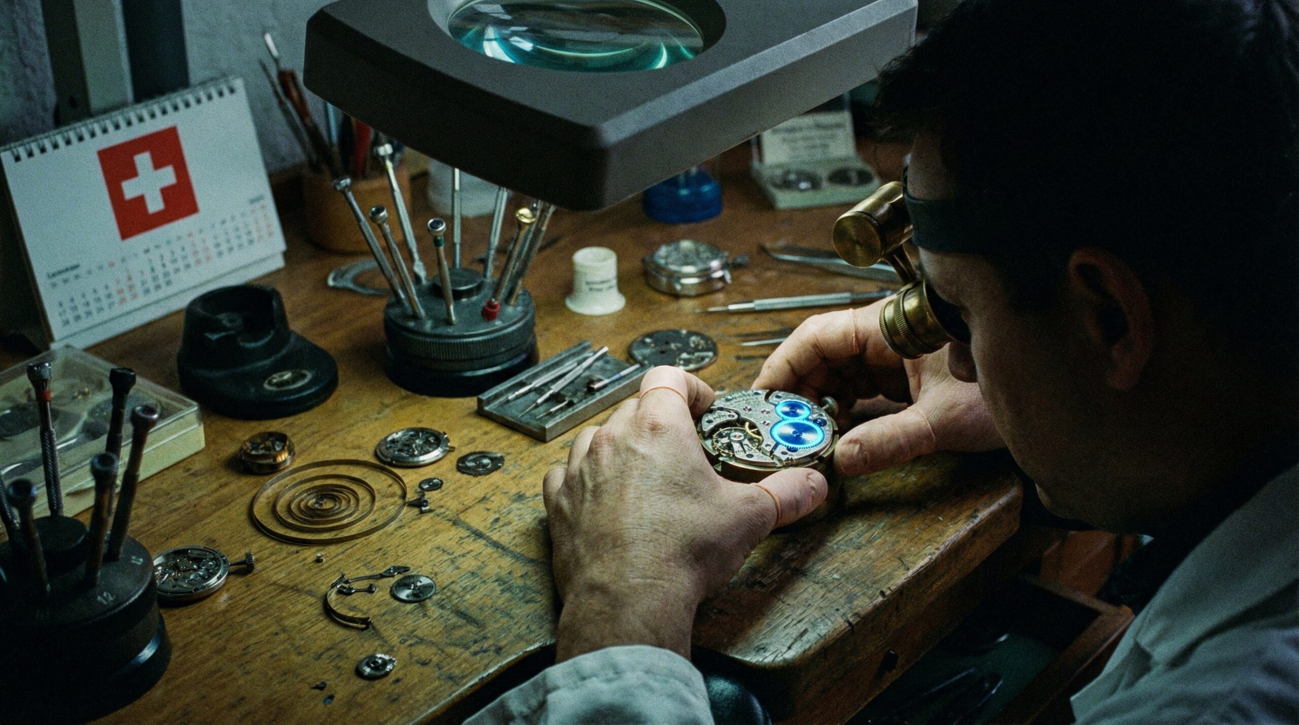 “cover_image_prompt”: “Editorial photo of a precision Swiss watchmaker’s workshop with magnifying loupe over intricate gears, one gear highlighted in electric blue glow representing the exact mechanism being triggered, dark moody lighting with selective focus, tech-precision aesthetic, 16:9 aspect ratio, premium quality”,